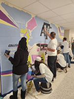 40 PPG employee volunteers in partnership with Team Penske beautified the Rock Hill Applied Technology Center in Rock Hill, SC, painting a hallway mural and brightening two classrooms.