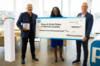 (L-R) Steven V. Abramson, president, chief executive officer and director at UDC; Malesia Dunn, PPG executive director, PPG Foundation and Global Corporate Social Responsibility; and Tim Knavish, PPG chairman and chief executive officer, commemorated the companies’ 25 years of collaboration with donations to the Boys & Girls Clubs of Mercer County, located near UDC’s headquarters in Ewing, N.J.