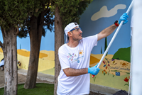 The project focused on enhancing the interior and exterior of the facility, which plays a vital role in promoting social inclusion, cultural engagement and well-being for women and older adults. The volunteers also painted a mural on the playground under the guidance of the local muralist Manuel Ojeda, which celebrates intergenerational relationships, especially the bonds between children and seniors.
