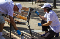 Volunteers revitalize shared community space supporting women, senior citizens