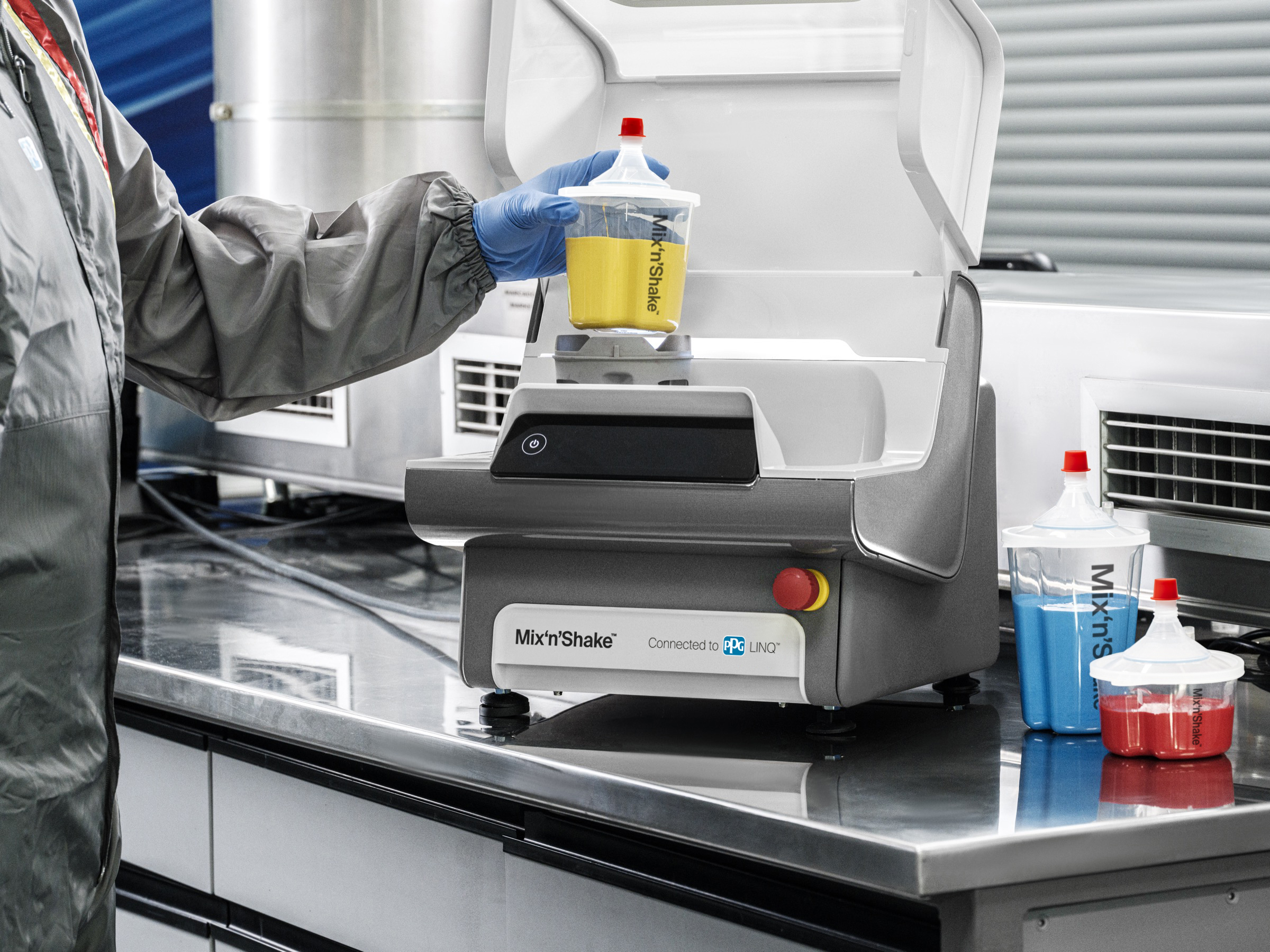 PPG MIX’N’SHAKE™ automated stirring technology replaces manual stirring processes to ensure a homogenized paint mix, complete color accuracy, and a better workplace.